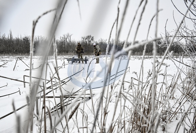 Soldiers from a UAS crew of the Striletskyi special forces police battalion of the National Police in Zaporizhzhia region get a Ukrainian GARA drone ready for the launch in the Pokrovsky direction, Donetsk region, Ukraine, January 23, 2026., Credit:Dmytro Smolienko / Avalon