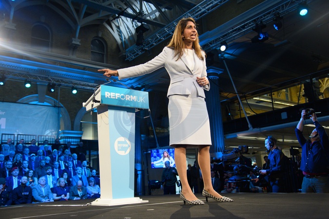 Suella Braverman Announces Defection at Reform UK Press Conference at Old Billingsgate Market, London, UK - Mon 26 January 2026