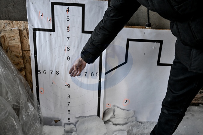 An engineer presents a target damaged during trials of the Gnom unmanned ground robotic platform with an installed PKM machine gun, Ukraine, on January 19, 2026. The system is designed to perform surveillance, reconnaissance, supply delivery and evacuation tasks. Ukrainian company Temerland develops unmanned robotic complexes, converts vehicles into unmanned ground systems, and supplies them to military units under contracts with the Ministry of Defense, Credit:Dmytro Smolienko / Avalon