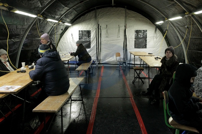 Local residents visit a mobile warming center deployed in the Desnianskyi district of Kyiv, Ukraine, on January 26, 2026. The center was set up due to disruptions in electricity and heating supply following Russian attacks on Ukraine's energy infrastructure, Credit:Hennadii Minchenko / Avalon