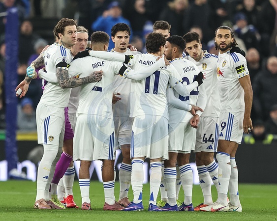 Leeds United team huddle during the Premier League match Everton vs Leeds United at Hill Dickinson Stadium, Liverpool, United Kingdom, 26th January 2026, Credit:Ae Cosgrove/News Images / Avalon