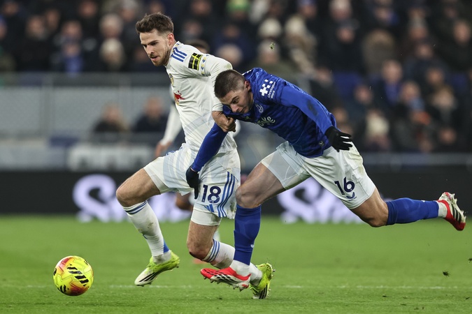 Anton Stach of Leeds United and Vitaliy Mykolenko of Everton battle for the ball during the Premier League match Everton vs Leeds United at Hill Dickinson Stadium, Liverpool, United Kingdom, 26th January 2026, Credit:Ae Cosgrove/News Images / Avalon
