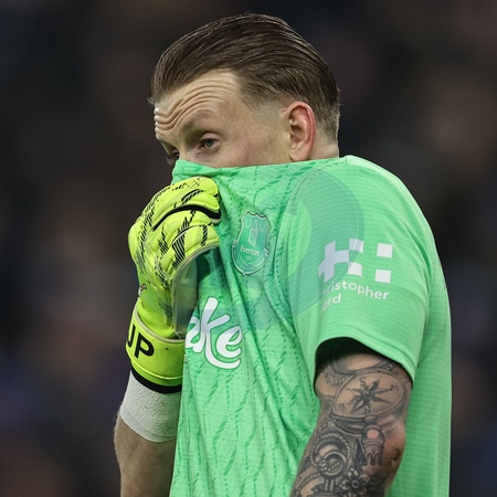 Everton goalkeeper Jordan Pickford reacts during the Premier League match Everton vs Leeds United at Hill Dickinson Stadium, Liverpool, United Kingdom, 26th January 2026, Credit:Ae Cosgrove/News Images / Avalon