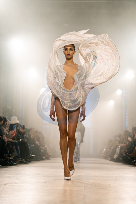 A model walks the runway durinh the Rahul Mishra Haute Couture Week Spring/Summer 2026 show as part of the Paris Fashion Week., Credit:Lounis Tiar / Avalon