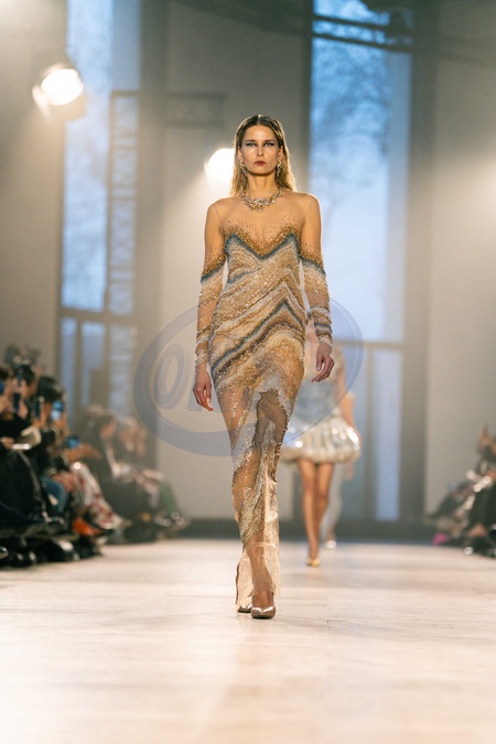 A model walks the runway durinh the Rahul Mishra Haute Couture Week Spring/Summer 2026 show as part of the Paris Fashion Week., Credit:Lounis Tiar / Avalon