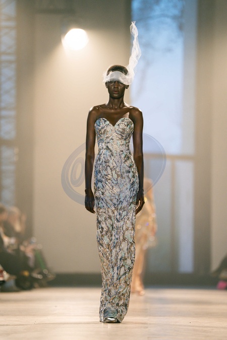 A model walks the runway durinh the Rahul Mishra Haute Couture Week Spring/Summer 2026 show as part of the Paris Fashion Week., Credit:Lounis Tiar / Avalon