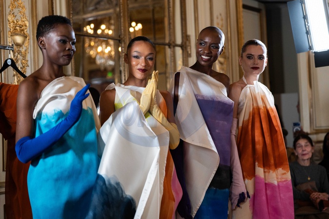Ophely Mezino, Nala Luuna Diagouraga and Anastasia Degtyarenko walks the runway during the Imane Ayissi Haute Couture Week Spring/Summer 2026 show as part of Paris Fashion Week, Credit:Lounis Tiar / Avalon