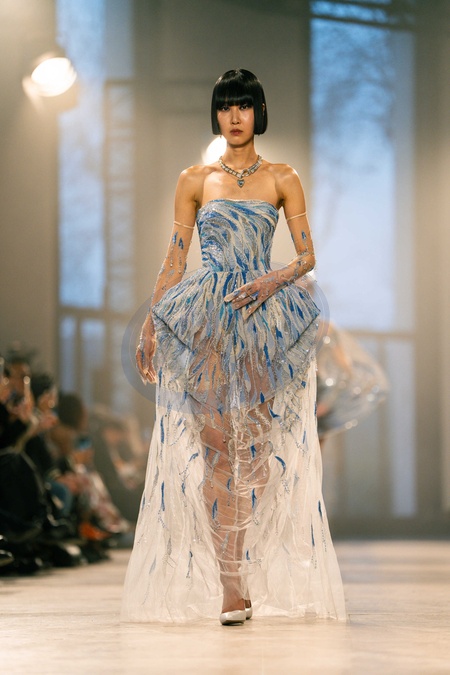 A model walks the runway durinh the Rahul Mishra Haute Couture Week Spring/Summer 2026 show as part of the Paris Fashion Week., Credit:Lounis Tiar / Avalon