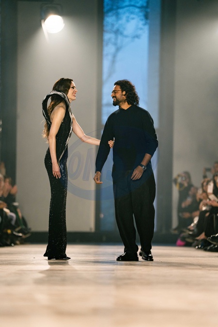 Coco Rocha And Indian Designer Rahul Mishra the runway durinh the Rahul Mishra Haute Couture Week Spring/Summer 2026 show as part of the Paris Fashion Week., Credit:Lounis Tiar / Avalon