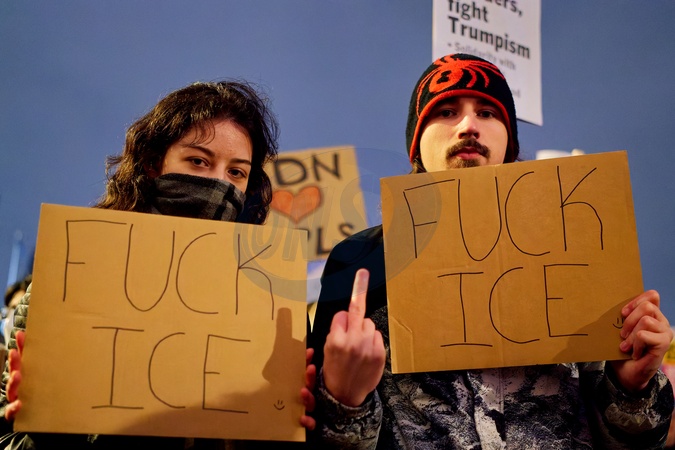 Solidarity with Minneapolis protest. Trafalgar Square. London. 26th January 2026.