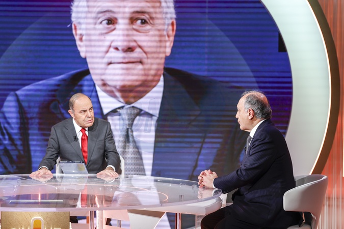 26/01/2026 Rome, Rai1, television program Cinque Minuti, in the photo Bruno Vespa with Gianlorenzo Cornado Italian Ambassador to Switzerland, Credit:Cristiano Minichiello / Avalon