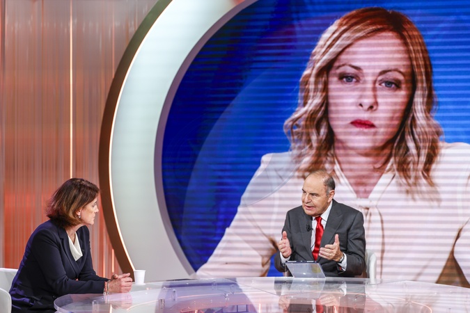 26/01/2026 Rome, Rai1, television program Cinque Minuti, in the photo Bruno Vespa with Carla Scotto, mother of Riccardo Minghetti, Credit:Cristiano Minichiello / Avalon