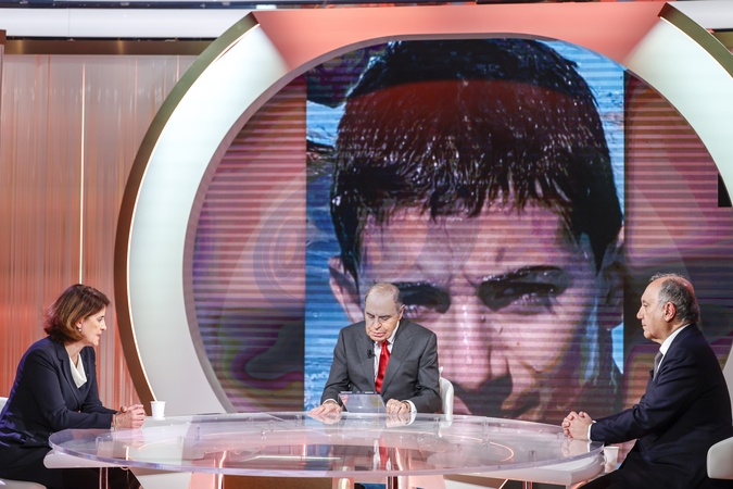 26701/2026 Rome, Rai1, television program Cinque Minuti, in the photo Bruno Vespa with Gianlorenzo Cornado Italian Ambassador to Switzerland and Carla Scotto, mother of Riccardo Minghetti, Credit:Cristiano Minichiello / Avalon
