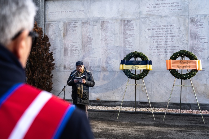 January 27, 2026, Turin, Monumental Cemetery. Holocaust Remembrance Day. Institutional ceremony honoring the gravestones of the fallen, dedicated to the memory of the extermination of the Jewish people, military internees, and all those deported to Nazi camps., Credit:Selene Daniele / Avalon