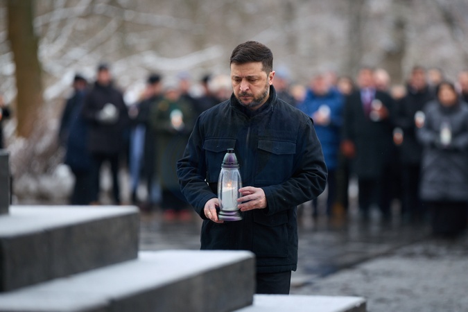 Ukraine's President Volodymyr Zelenskyy pays respects to Holocaust victims at a ceremony in Kyiv, Credit:Office of the President of Ukraine / Avalon