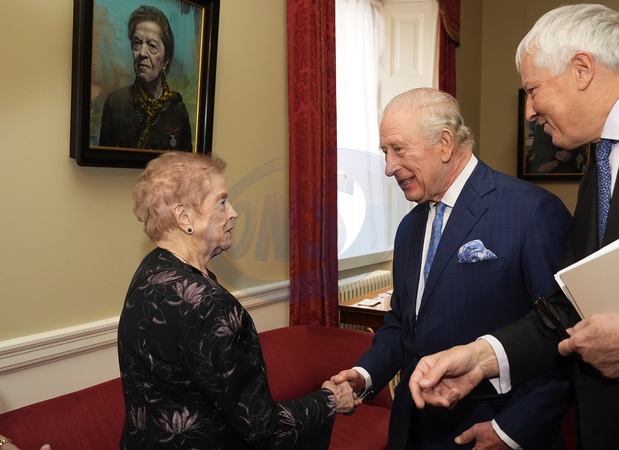 King Charles III speaks with Holocaust survivor Rachel Levy during a reception at Buckingham Palace in London to mark Holocaust Memorial Day. Picture date: Tuesday January 27, 2026., Credit:Aaron Chown / Avalon