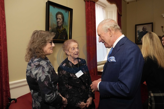 King Charles III speaks with Holocaust survivor Rachel Levy (centre) and guest during a reception at Buckingham Palace in London to mark Holocaust Memorial Day. Picture date: Tuesday January 27, 2026., Credit:Aaron Chown / Avalon