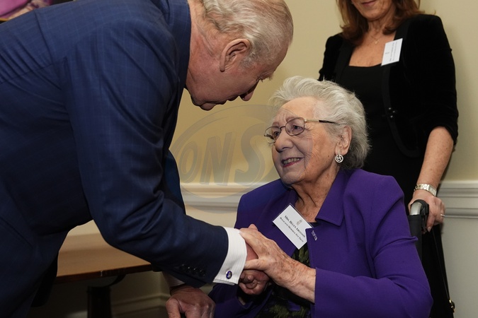 King Charles III speaks with Holocaust survivor Helen Aronsen during a reception at Buckingham Palace in London to mark Holocaust Memorial Day. Picture date: Tuesday January 27, 2026., Credit:Aaron Chown / Avalon