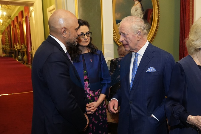 King Charles III speaks with Sajid Javid during a reception at Buckingham Palace in London to mark Holocaust Memorial Day. Picture date: Tuesday January 27, 2026., Credit:Aaron Chown / Avalon