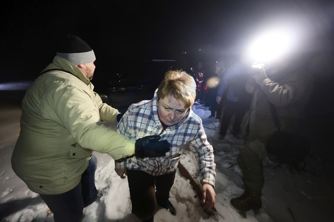 Rescuers evacuate a woman from the basement of a school damaged by Russian shelling in Kharkiv, Ukraine, on January 26, 2026. On Monday evening, January 26, the city suffered a combined Russian attack. The strike injured three people and damaged two schools, apartment buildings and an energy infrastructure facility in the Industrialnyi district, causing electricity outages and the introduction of emergency blackout schedules in the region, Credit:Viacheslav Madiievskyi / Avalon