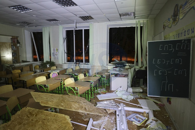 Windows blown out by a blast wave in a classroom of a school building partially destroyed by Russian shelling in Kharkiv, Ukraine, on January 26, 2026. On Monday evening, January 26, the city suffered a combined Russian attack. The strike injured three people and damaged two schools, apartment buildings and an energy infrastructure facility in the Industrialnyi district, causing electricity outages and the introduction of emergency blackout schedules in the region, Credit:Viacheslav Madiievskyi / Avalon