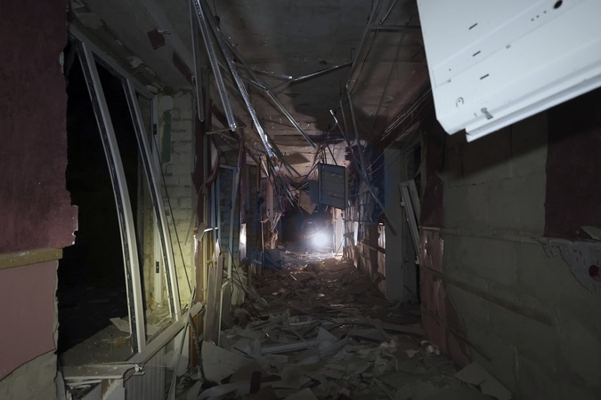 A corridor of a school building partially destroyed as a result of Russian shelling in Kharkiv, Ukraine, on January 26, 2026. On Monday evening, January 26, the city suffered a combined Russian attack. The strike injured three people and damaged two schools, apartment buildings and an energy infrastructure facility in the Industrialnyi district, causing electricity outages and the introduction of emergency blackout schedules in the region, Credit:Viacheslav Madiievskyi / Avalon