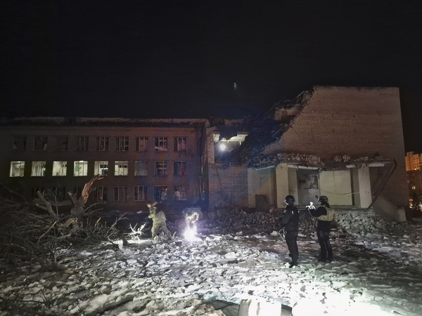 A school building partially destroyed as a result of Russian shelling in Kharkiv, Ukraine, on January 26, 2026. On Monday evening, January 26, the city suffered a combined Russian attack. The strike injured three people and damaged two schools, apartment buildings and an energy infrastructure facility in the Industrialnyi district, causing electricity outages and the introduction of emergency blackout schedules in the region, Credit:Viacheslav Madiievskyi / Avalon