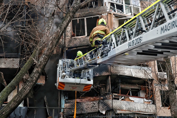 Firefighters extinguish a fire that broke out at a nine-storey residential building following a Russian drone strike on Odesa, Ukraine, on January 27, 2026. An overnight Russian drone attack on January 27 left Odesa with significant infrastructure damage. Authorities reported 22 affected people, 14 of whom sustained minor injuries. Search and rescue work continues at the strike sites, Credit:Nina Liashonok / Avalon