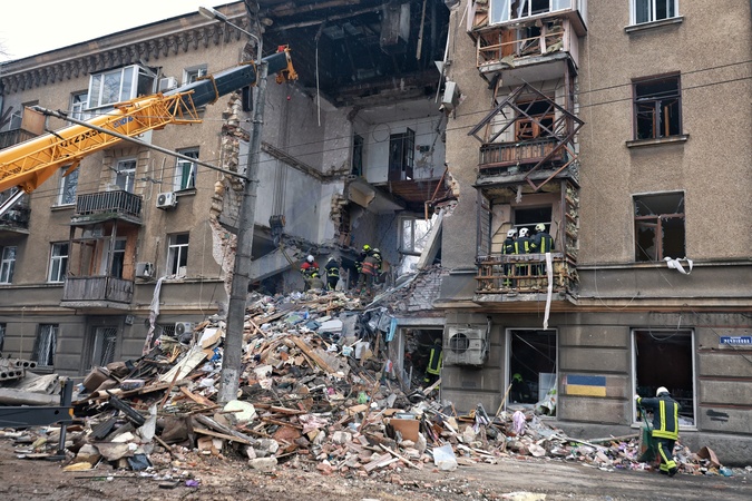 Emergency responders and utility workers dismantle rubble by hand at a residential building damaged by a Russian drone strike that caused apartment collapses from the fourth to the second floors in Odesa, Ukraine, on January 27, 2026. An overnight Russian drone attack on January 27 left Odesa with significant infrastructure damage. Authorities reported 22 affected people, 14 of whom sustained minor injuries. Search and rescue work continues at the strike sites, Credit:Nina Liashonok / Avalon