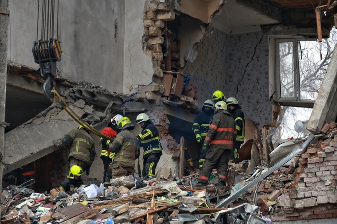 Emergency responders and utility workers dismantle rubble by hand at a residential building damaged by a Russian drone strike that caused apartment collapses from the fourth to the second floors in Odesa, Ukraine, on January 27, 2026. An overnight Russian drone attack on January 27 left Odesa with significant infrastructure damage. Authorities reported 22 affected people, 14 of whom sustained minor injuries. Search and rescue work continues at the strike sites, Credit:Nina Liashonok / Avalon