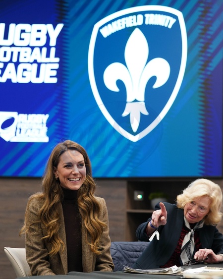 27/01/2026. Wakefield, UK. The Princess of Wales during a visit to Wakefield Trinity Rugby League club. Her Royal Highness met Marc Lovering, the RFL's Director of Performance and Development. The Princess then joined a session with the In Touch programme, which provides an open space for elderly people within the local community to help tackle social isolation by hosting quizzes, workshops and stadium tours. The Princess also met with young people from Wakefield's Inspiring Futures programme, which supports those who are at risk of anti-social behaviour and youth crime through goal setting, stress management, and teamwork. Finally, Her Royal Highness headed out to the rugby pitch and joined a skills session with girls from Wakefield's Champion Schools competition., Credit:Pete Maclaine / Avalon