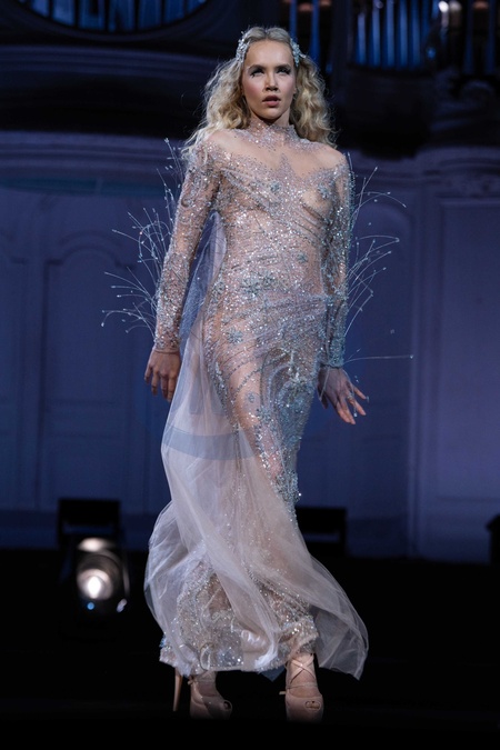 A model walks the runway during the Julien Fournié Haute Couture Week Spring/Summer 2026 show as part of Paris Fashion Week, Credit:Lounis Tiar / Avalon