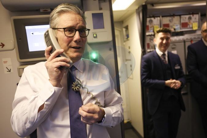 28/01/2026. Beijing, China. Prime Minister Keir Starmer makes a tannoy announcement to members of the delegation as he arrives in China., Credit:Simon Dawson / Avalon