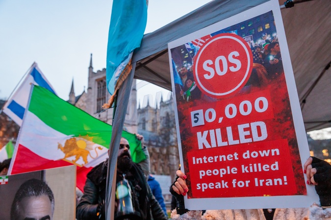 Parliament Square, London, UK. 27th January 2026.Protesters and members of the Iranian community in London continue their weekly protest opposite the Houses of Parliament, calling for the UK government to place the Islamic Revolutionary Guard Corps (IRGC) on Britain's terrorist list.The activists in Iran, of which an estimated 50,000 have been killed in the last 3 weeks, for protesting against the Islamic Republic regime and chanting for the return of exiled Crown Prince Reza Pahlavi, the last Shah's eldest son., Credit:Photo by Amanda Rose / Avalon