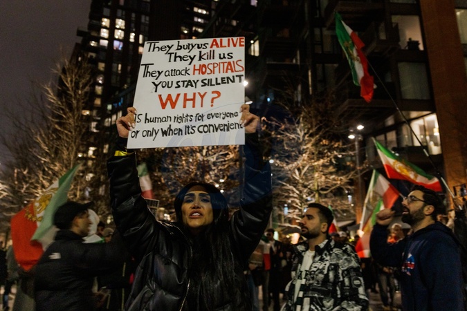 Iranian Embassy, London, UK. 25th January 2026.Activists and members of the Iranian community march through London in support of demonstrations in Iran. Waving Imperial Lion and Sun Iranian flags alongside GB Union Jack flags, Israeli flags and American flags, they are urging US President Trump to keep his promise to support the Iranian people against the violence and repression by the Islamic Republic regime and for the UK government put the Islamic Revolutionary Guard Corps (IRGC) on the list of terrorist organisations and shut down the Islamic Regime Embassy., Credit:Photo by Amanda Rose / Avalon