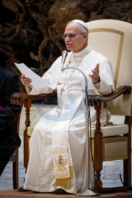 Pope Leo XIV leads his traditional Wednesday General Audience in Paul VI Audience Hall in Vatican City, Vatican, on 28 January 2026.