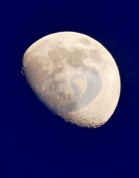 The waxing gibbous mon rises in the dusk skies visible at 77.6% This intermediate Moon phase starts after the First Quarter Moon and lasts until the Full Moon., Credit:Geoffrey Swaine / Avalon