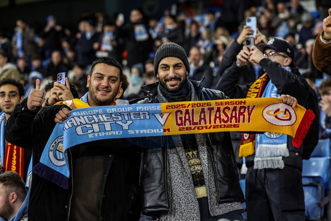 Galatasaray fans before the game during the UEFA Champions League Matchday 8 of 8 match Manchester City vs Galatasaray at City of Manchester Stadium, Manchester, United Kingdom on 28 January 2026, Credit:Mark Cosgrove/News Images / Avalon