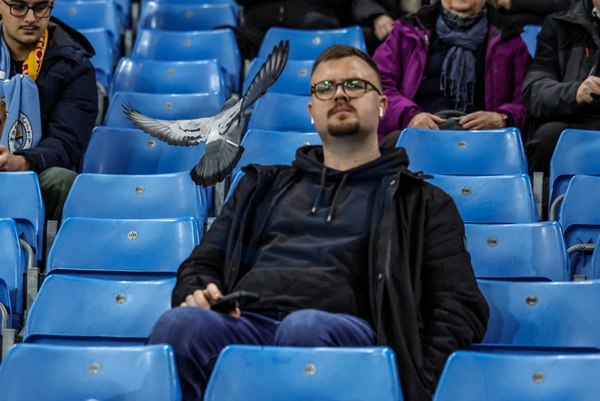 A pigeon in the home end of the City of Manchester Stadium during the UEFA Champions League Matchday 8 of 8 match Manchester City vs Galatasaray at City of Manchester Stadium, Manchester, United Kingdom on 28 January 2026, Credit:Mark Cosgrove/News Images / Avalon