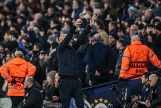 Pep Guardiola manager of Manchester City celebrates as Erling Haaland of Manchester City scores to make it 1-0 during the UEFA Champions League Matchday 8 of 8 match Manchester City vs Galatasaray at City of Manchester Stadium, Manchester, United Kingdom on 28 January 2026, Credit:Mark Cosgrove/News Images / Avalon