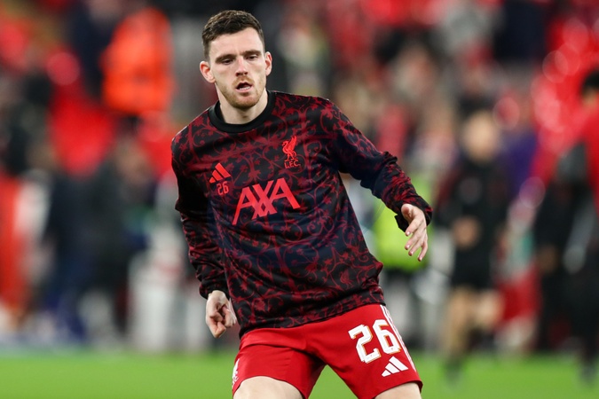 Andrew Robertson of Liverpool warms up ahead of the UEFA Champions League Match Day 8 of 8 match Liverpool vs Qarabag FK at Anfield, Liverpool, United Kingdom on 28 January 2026, Credit:Jorge Horsted/News Images / Avalon