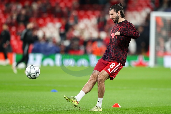 Dominik Szoboszlai of Liverpool warms up ahead of the UEFA Champions League Match Day 8 of 8 match Liverpool vs Qarabag FK at Anfield, Liverpool, United Kingdom on 28 January 2026, Credit:Jorge Horsted/News Images / Avalon