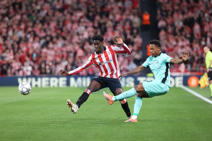 Adama Boiro (Athletic Club) and Geny Catamo (Sporting Portugal) battle for the ball, Credit:Juan Lazkano Photobilbao / Avalon