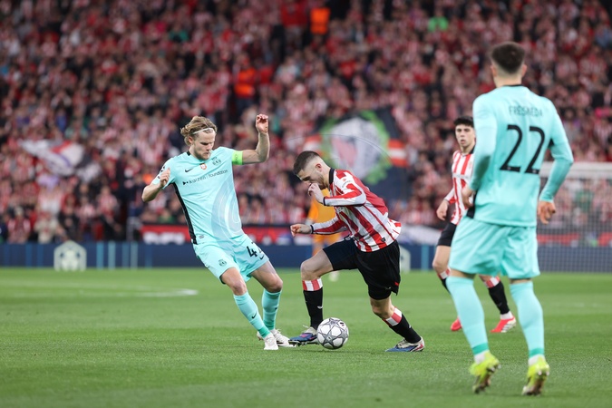 Oihan Sancet (Athletic Club) and Morten Hjulmand (Sporting Portugal) battle for the ball, Credit:Juan Lazkano Photobilbao / Avalon