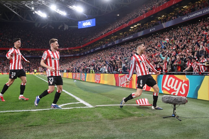 Oihan Sancet (Athletic Club) , Robert Navarro (Athletic Club) and Rego (Athletic Club) celebrate after scoring his team's first goal, Credit:Juan Lazkano Photobilbao / Avalon