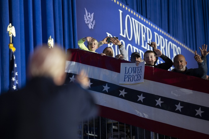 President Donald Trump delivers an economic speech at the Horizon Events Center in Clive, Iowa on Tuesday, January 27, 2026., Credit:Molly Riley / Avalon