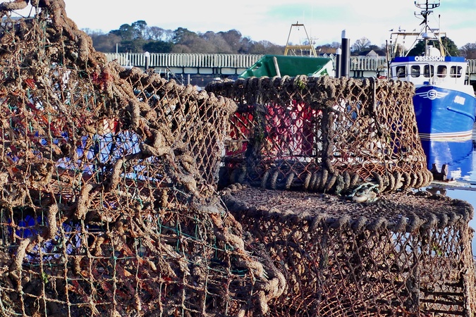 Fishermans pots by the harbour. Lymington is a historic Georgian market and port town in Hampshire, England, situated on the southern edge of the New Forest National Park. It is famous for its sailing heritage and serves as a major gateway to the Isle of Wight. Lymington is famous for its two large marinas (including Lymington Yacht Haven) and holds a strong reputation in the sailing community. The town is characterized by its wide Georgian High Street and is located on the edge of the New Forest, with easy access to the Solent Way coastal path., Credit:Geoffrey Swaine / Avalon