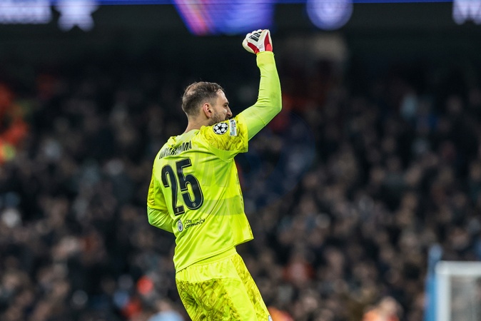 Manchester City goalkeeper Gianluigi Donnarumma celebrates a goal scored by Rayan Cherki of Manchester City to make it 2-0 during the UEFA Champions League Matchday 8 of 8 match Manchester City vs Galatasaray at City of Manchester Stadium, Manchester, United Kingdom on 28 January 2026, Credit:Mark Cosgrove/News Images / Avalon