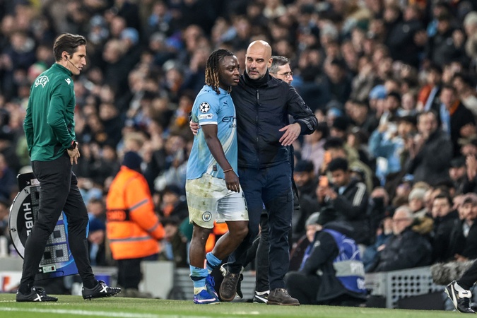 Jeremy Doku of Manchester City is substituted off for Phil Foden of Manchester City due to injury during the UEFA Champions League Matchday 8 of 8 match Manchester City vs Galatasaray at City of Manchester Stadium, Manchester, United Kingdom on 28 January 2026, Credit:Mark Cosgrove/News Images / Avalon