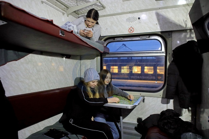 Girls play a board game inside an invincibility wagon installed at the railway station in Vyshneve as part of a joint initiative by Ukrzaliznytsia and the Kyiv Regional Military Administration to support residents during power and heating outages caused by Russian attacks on Ukraine's energy facilities, Kyiv region, Ukraine, on January 28, 2026, Credit:Volodymyr Tarasov / Avalon